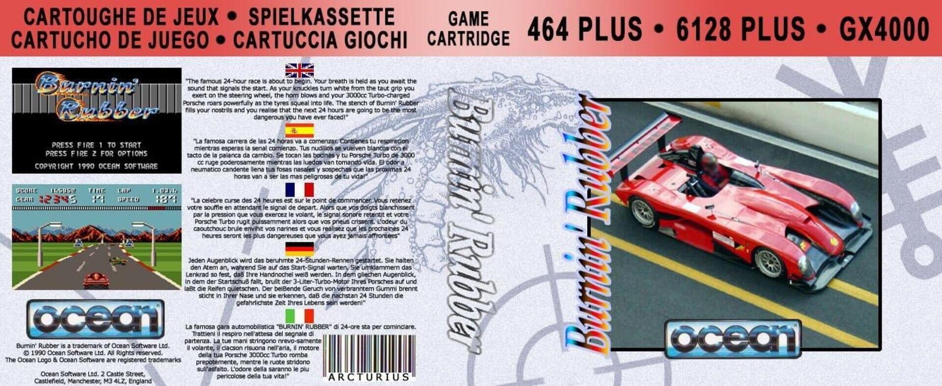 Burnin' Rubber, a GX4000/CPC plus launch/bundle title (and one of the few exclusives for the range), is an arcade-style racing game, much inspired by the developers' earlier WEC Le Mans.