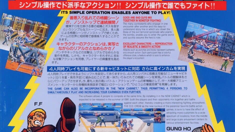 A four-player beat-em-up. Save the city from the Evil Gang who are hell-bent on blowing up large sections of the city.