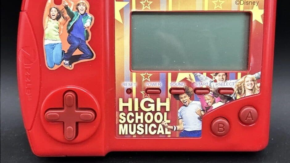 Relive the excitement of High School Musical anytime, anywhere with this compact handheld LCD game developed by Zizzle. Released in 2007, the game offers five built-in mini-games inspired by scenes from the hit Disney film. Players use physical buttons to navigate rhythm and memory challenges, all displayed on a classic black-and-white LCD screen. With character art and familiar themes, it’s designed for younger fans looking to experience the magic of East High on the go. No console required—just insert AAA batteries and start playing!