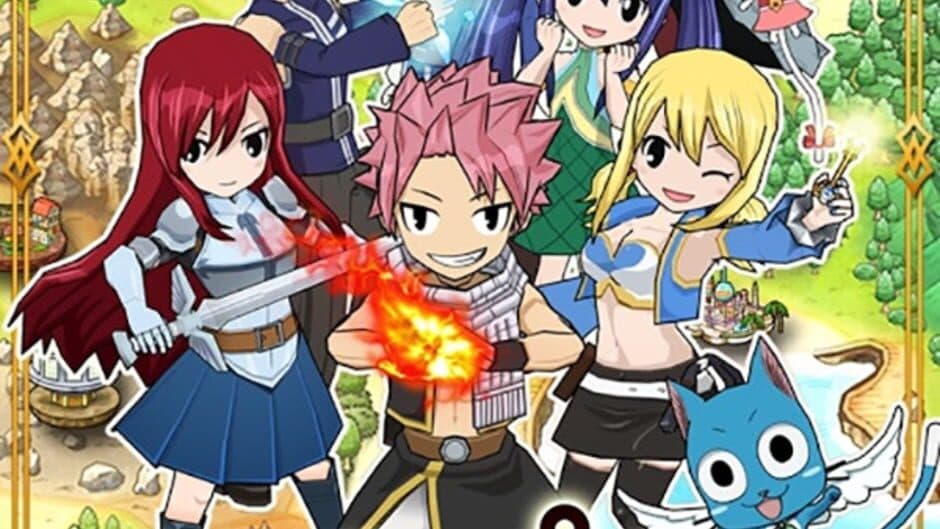 In this Puzzle RPG, a party of up to five characters from the Fairy Tail series are utilized to complete quests. Through a sequence of turn-based battles, the player uses their touchscreen to match the same color Lacrima to build up attacks. The greater number of Lacrima chained in a set amount of time, the stronger the units' actions become.