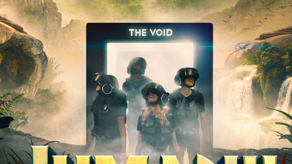 A tie-in to the film "Jumanji: The Next Level". You play as the title characters of the film in an original storyline voiced by Kevin Hart, Dwayne Johnson, Jack Black, and Karen Gillan. The experience was directed by Curtis Hickman and produced by the VOID in collaboration with SONY Pictures, with Tracy Hickman as the writer. As the four main characters, you must save the world of Jumanji from the curse set by Hakaar - a demonic sorcerer. The four playable characters have unique abilities that will allow them to progress through the adventure. Heed the warning of the jungle drums! You and your companions fall into this unique world of adventure, becoming Dr. Bravestone, Ruby Roundhouse, Prof. Oberon or 'Mouse' Finbar. You risk your 'three' lives in a daring quest to return the jewel to the temple from which it was stolen. Feel the cooling mists of waterfalls and the burning heat of desert sands. Each of you have unique abilities – and you must use them together to survive. From 'dance fighting' to navigating dangerous animals, with every step you become the heroes who must 'save Jumanji and call out its name!'