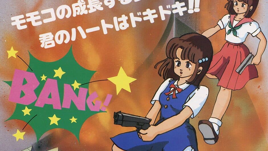 This platform game features Momoko, a young Japanese girl who ages by several years each time the player reaches the next level. The goal for each level is to quickly climb several floors by escalator, ladder, or trampoline in the building she is in before the fire that is below her reaches her. These level settings start out from grade school settings to office type buildings. While jumping over obstacles, she must shoot various alien-like enemies that come after her on each floor. She can upgrade her weapon by destroying certain enemies as well as entering special hidden doorways which feature minigames which require you to jump obstacles. These doorways can also be used as a short-cut, and sometimes they are mandatory to be used in order to climb to the next floor. When Momoko reaches the top floor of a level, she must jump onto a small blimp flying above her to beat the level. Momoko begins as a four-year-old and ages through five levels. The final level is a bonus chance in which she is a twenty-year-old bride collecting items - the game concludes with her getting married, thus giving birth to a new Momoko and starting the cycle anew.