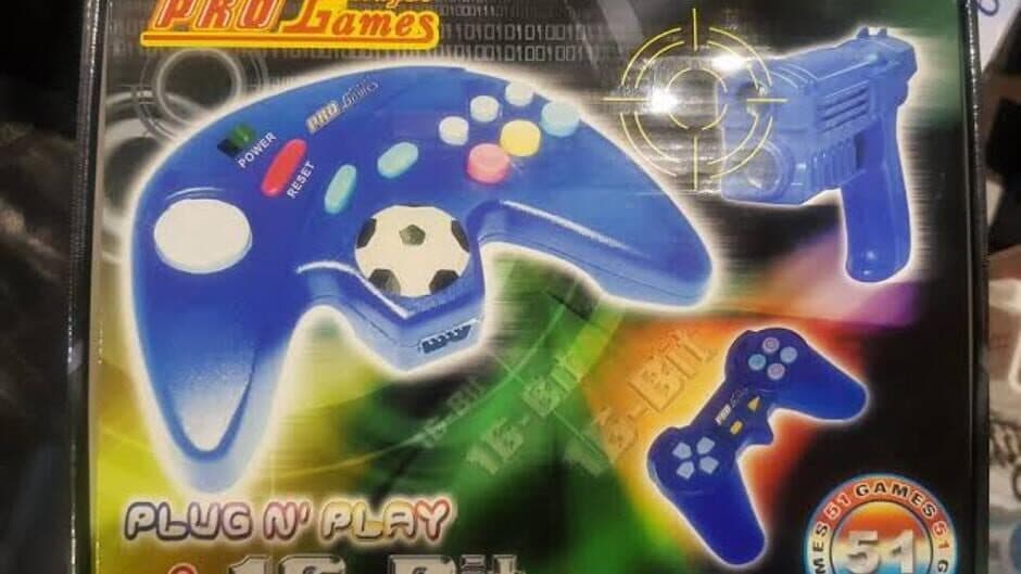 A Plug & Play console with a built-in NES-analog chip (famiclone), which comes with a 72 in 1 multicart with unlicensed NES games, and also with the following 51 games, made for famiclones, built-in:
