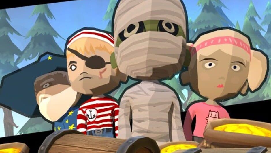 Raiders Of The Lost Island is a LOCAL semi-cooperative party game for up to 4 players, where you and your weird looking friends are hunting treasures on the mysterious Lost Island.